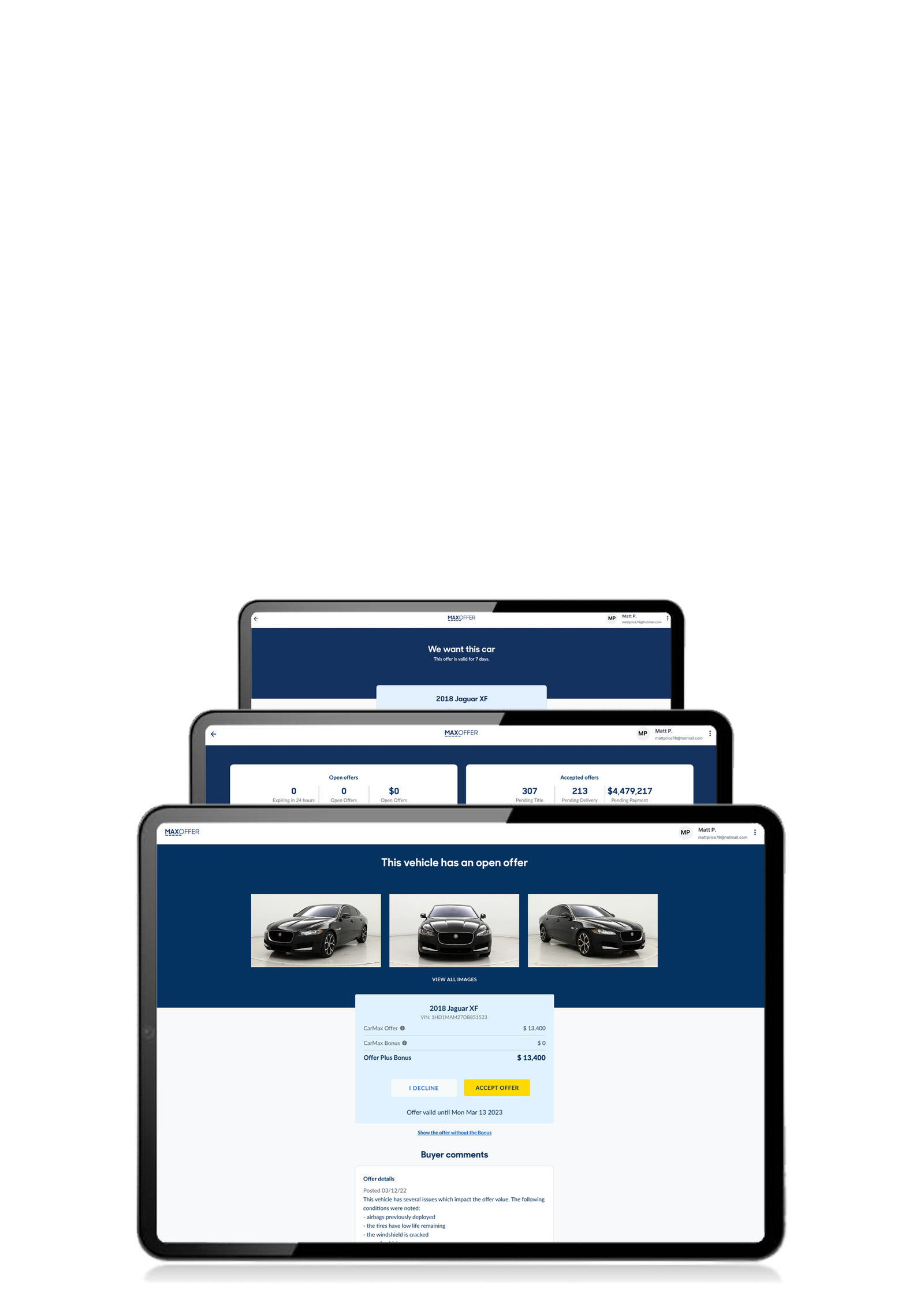Dealer-only appraisal tool provides firm offers on any car, allows you to sell without fees, and see verified CarMax offers on any car.